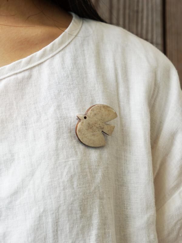 ブローチ おしゃれ 鳥 千鳥 白 黒水牛 BONE 彫刻 素朴 ナチュラル