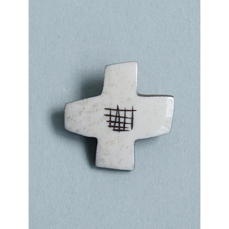 ブローチ おしゃれ コスモス 花 フラワー 白 黒水牛 BONE 彫刻 素朴 ナチュラル